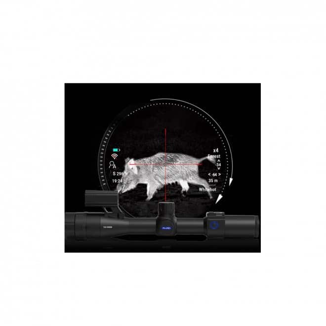 The TS31 series uses a circular LTPS 800×800 display, which offers high-definition images with intense contrast and has an extra-wide field of view for enhanced situational awareness. The experience feels more natural like using a traditional optical viewfinder. Also equipped with rangefinder up to 1000mt with ballistic calculator.