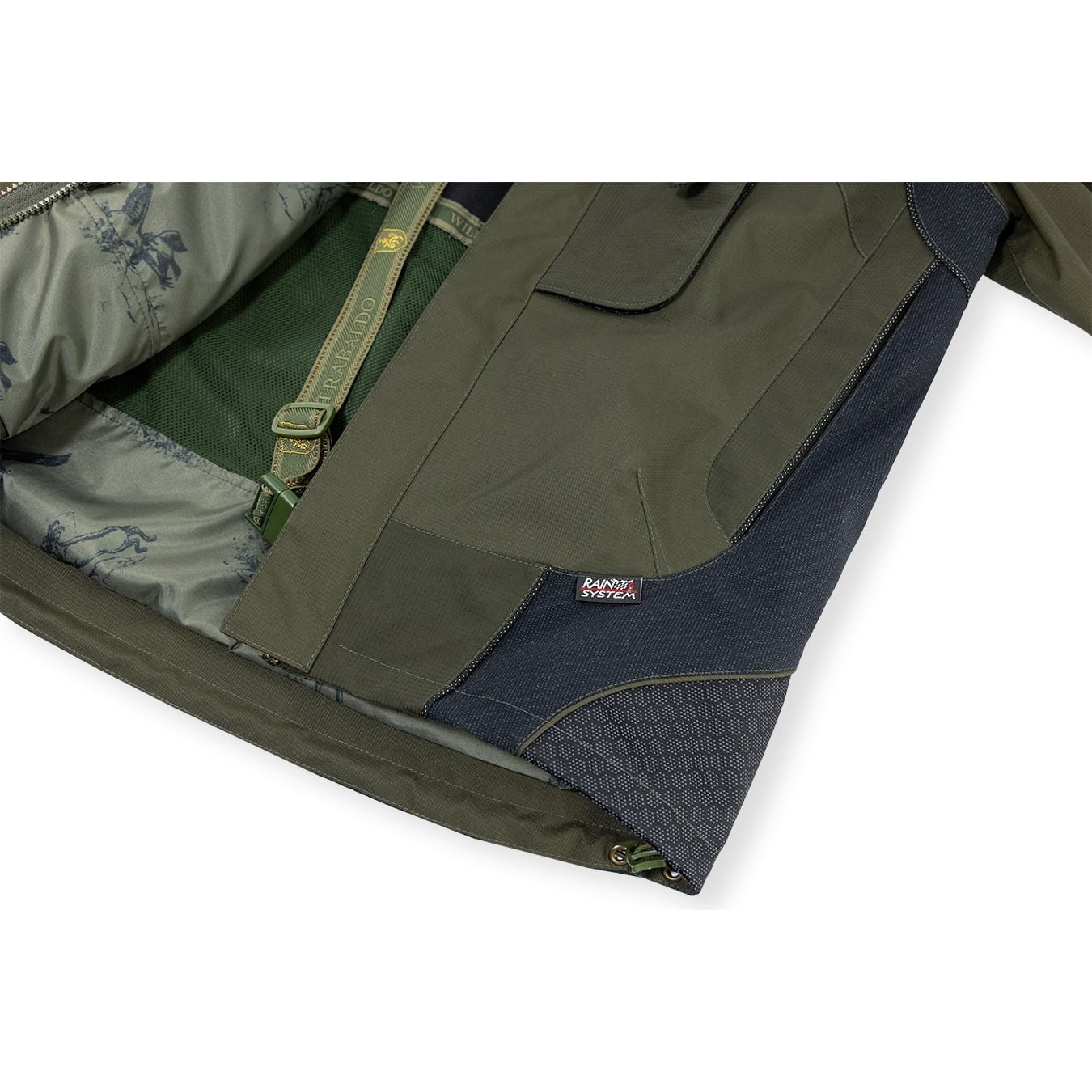 Ad impermeabilizzare il tutto troviamo la nostra membrana RAINSYSTEM, laminata direttamente sui tessuti esterni. Questa lavorazione della membrana, oltre a tenervi asciutti e impermeabilizzare le tasche esterne, limita l’assorbimento d’acqua evitando al capo di appesantirsi anche dopo un lungo stazionamento sotto la pioggia.