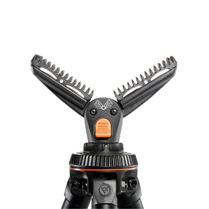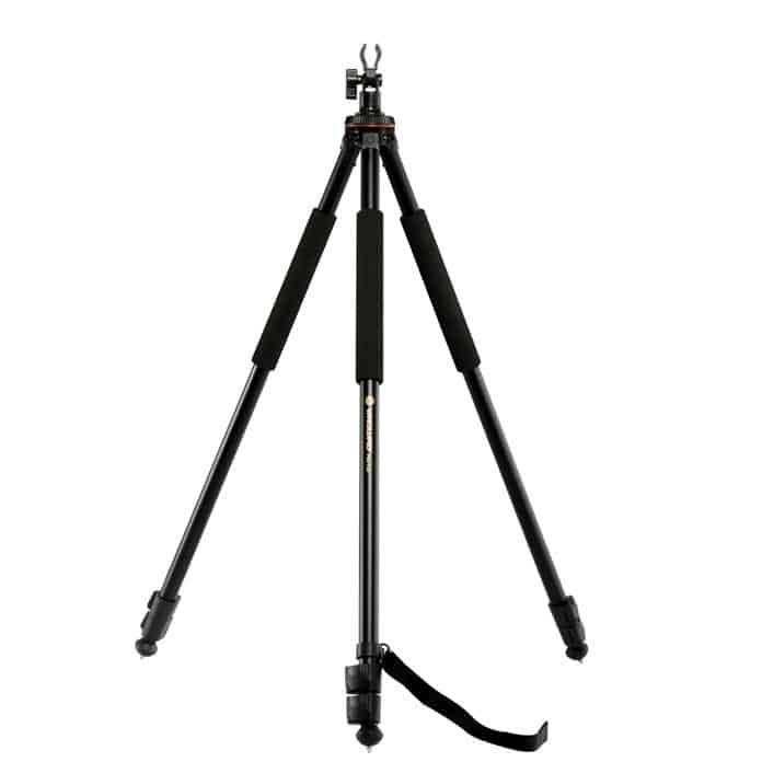 Pro Series è il nostro treppiede da tiro più compatto, affidabile e conveniente. Questo treppiede in alluminio robusto, ma leggero e compatto è semplice da montare e smontare con le serrature a sgancio rapido e gli anelli antirumore che lo rendono estremamente silenzioso. PRO T68 offre un supporto costante anche su terreni sconnessi. Le sue gambe possono essere regolate su due angoli in un secondo semplicemente ruotando il blocco del disco, anche quando indossi guanti spessi! Le gambe si bloccano in posizione preimpostata con un’affidabilità costante. Non sono necessari strumenti! Nessun pulsante noioso! Il suo innovativo Yoke Adjustment System (YAS) offre una forcella a V in gomma regolabile per adattarsi a una vasta gamma di armi da fuoco. Con una semplice pressione del pulsante, i bracci della forcella si regolano e si bloccano per offrire angoli da 160, 120 e 80 gradi. Non è necessario alcun cambio di testa quando si cambia arma da fuoco. Morbide alette in gomma avvolgono l’arma per una sicurezza ancora maggiore. La testa è orientabile a 360 gradi permettendo tiri da qualsiasi angolazione. Il treppiede PRO T68 viene fornito completo di una forcella ad U aggiuntiva per fucile. Altre caratteristiche includono piedini con punta metallica per vari terreni, una scala graduata incisa sulle gambe per misurare la profondità e un adattatore universale da 3/8 in modo da poter montare anche videocamere e fotocamere.