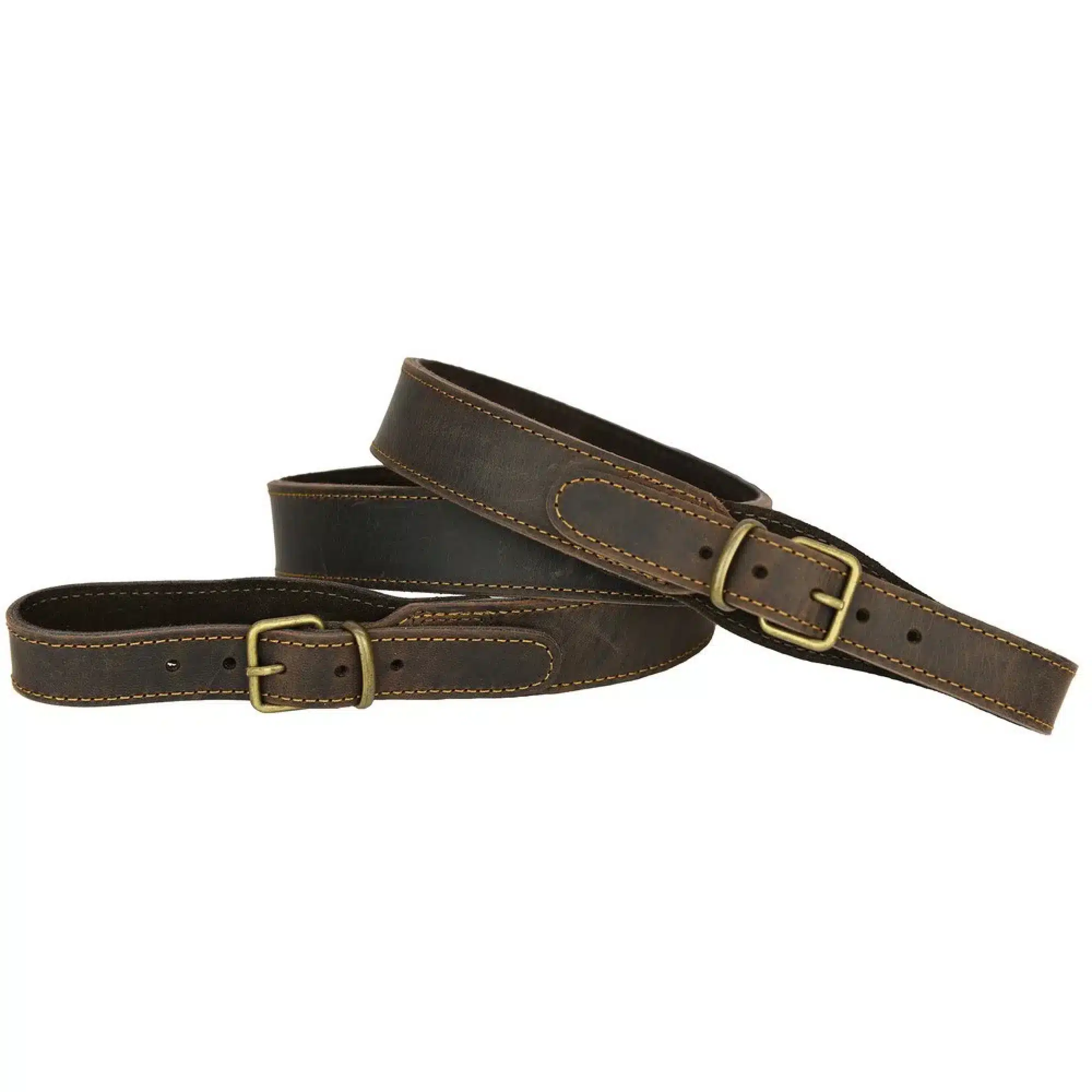Bretella per fucile in pelle idrorepellente ingrassata con effetto nabuk, completamente foderata in pelle scamosciata antiscivolo, cinturini con protezione della fibbia e con robuste cuciture Lunghezza cm 102