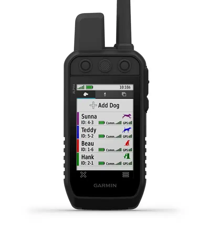 Monitora fino a 20 cani con i collari per cani compatibili (fino a 10 chilometri di distanza) sullo schermo touchscreen a colori.