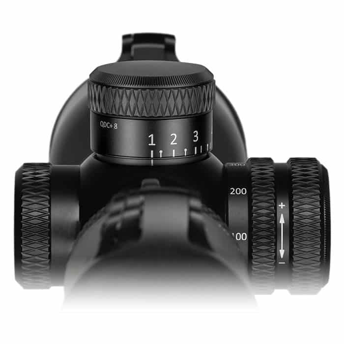 Un altro vantaggio del design compatto è il breve raggio di movimento della meccanica necessaria per gli ingrandimenti che si traduce in una migliore precisione e un punto di impatto più stabile quando si cambia valore di ingrandimento. Allo stesso tempo, la robustezza meccanica compensa lo stress aggiuntivo sul cannocchiale durante i tiri con un dispositivo a clip-on montato.