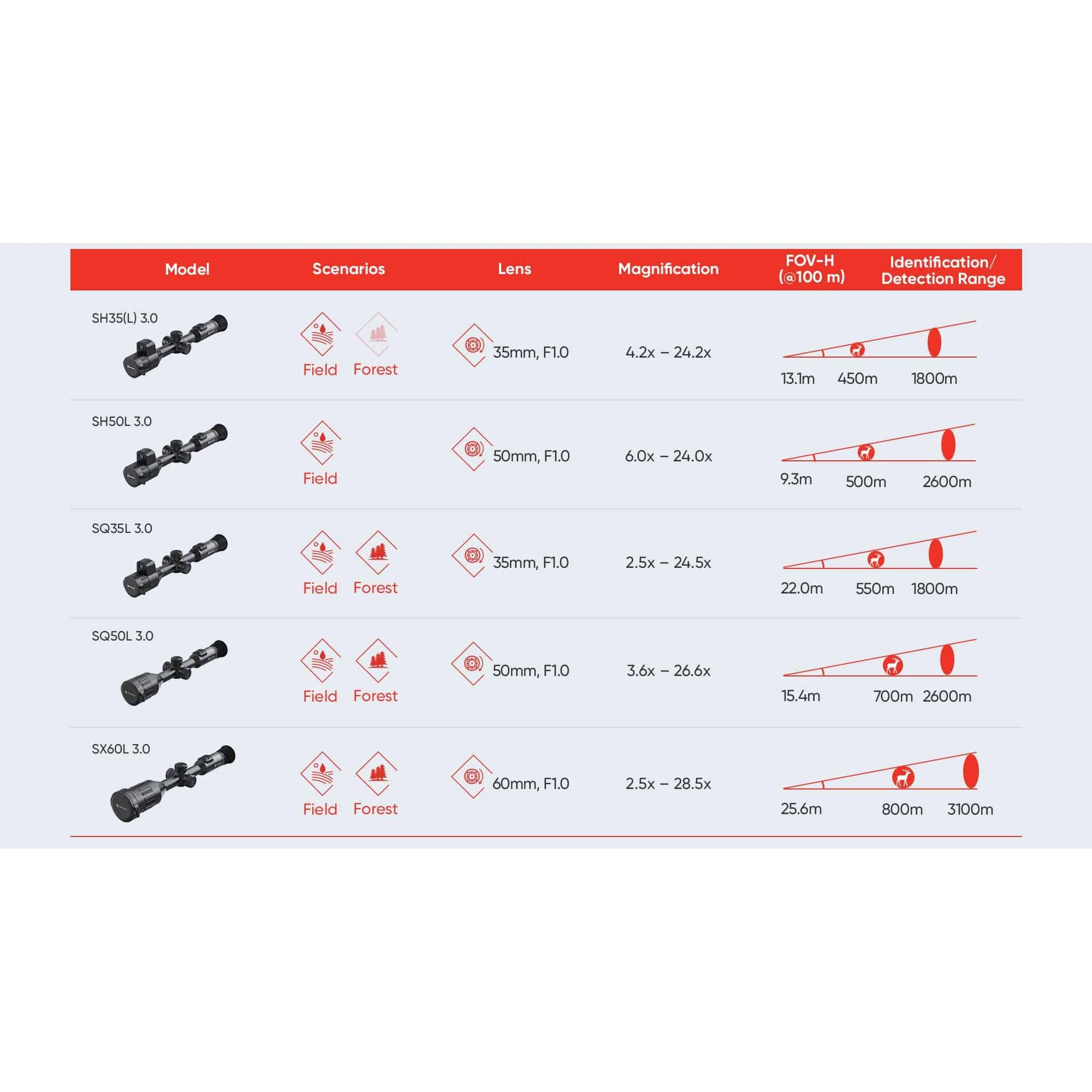 L’SQ35L è un’opzione desiderabile per chi caccia nei boschi, grazie al suo campo visivo di 22 metri e al modesto ingrandimento di base di 2,5x. Anche il sostanzioso obiettivo da 3mm è stato adattato alle esigenze dei cacciatori sul campo, garantendo un’eccezionale nitidezza e profondità di dettaglio. Si tratta di uno strumento versatile, adattato ad entrambi i tipi di appassionati di caccia.